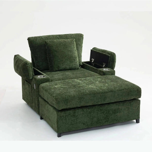 Modern Oversized Chenille Accent Chair with Ottoman Sofa Bed for Living Room