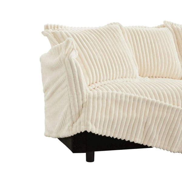 Soft Plush Fabric Sofa with 32D High-Density Sponge and Movable Ottoman
