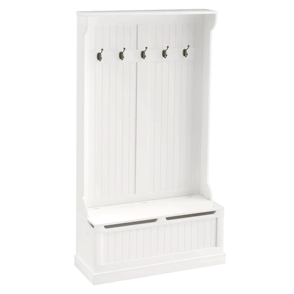 HOMCOM 38' 3-In-1 Entryway Hall Tree with Storage Bench, Coat Rack with Four Hooks and Shoe Storage, White