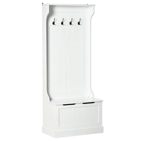 HOMCOM Hall Tree with Coat Rack, Storage and Sitting Bench, White